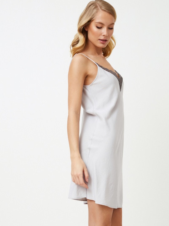 Шикарно и великолепно...не требуется больше слов… Ночная рубашка Brigitte выполнена из очень мягкой ткани нежно-серого цвета с эффектом шелка. Декольте украшено красивыми кружевными элементами темного цвета. Для вашего удобства бретельки регулируются сзади. Ночная рубашка имеет боковой разрез внизу для удобства движений.