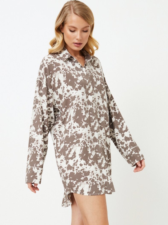 Представляем вашему вниманию уникальную ночную рубашку Cinnamon, которая станет вашим пропуском в мир мечтательных ночей. Ночная рубашка выполнена из мягкой вискозной ткани с коричнево-кремовым абстрактным рисунком. Ночная рубашка на пуговицах с длинными рукавами, украшенными окантовкой на манжетах, воротником и элегантной удлиненной спинкой - идеальное сочетание комфорта и элегантности. Ночная рубашка Cinnamon станет вашим идеальным спутником для уютных вечеров, наполненных теплом и элегантностью. Ткань - вискоза.