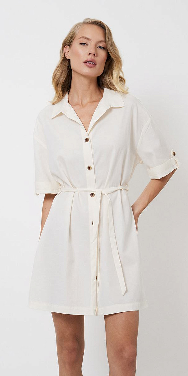 Представляем вам сорочку Lorraine — гармоничное сочетание комфорта и элегантности, идеально подходящее для отдыха или в качестве шикарного пляжного наряда. Изготовлена из хлопка с вискозой с добавлением тенселя, приятно прилегает к коже, спокойный однотонный цвет излучает неподвластную времени элегантность. Эта сорочка на пуговицах с короткими рукавами имеет классический воротник и пояс, который подчеркивает ваш силуэт. Сложенные рукава и пояс придают образу утонченный вид. Независимо от того, отдыхаете ли вы дома или наслаждаетесь солнечным днём на улице, сорочка Lorraine подарит вам непринуждённый стиль и комфорт.