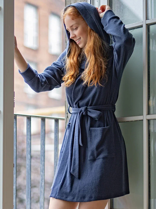 Роскошный женский халат-кардиган с капюшоном. Сшит из трикотажа, визуально и по ощущениям напоминающего кашемир. Такой же мягкий, обволакивающий, согревающий, уютный. Смотрится благородно и респектабельно. Халат на запАх, имеет внутренние завязки для фиксации полочек. Мягкий пояс, удобные накладные карманы.