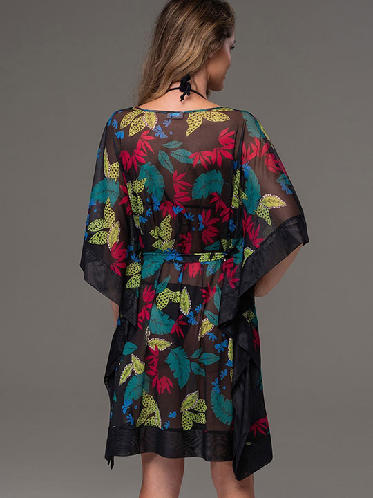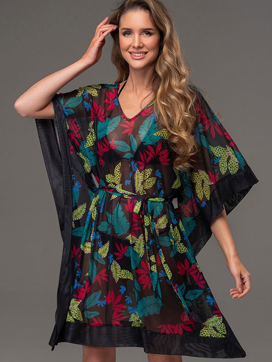 Туника Mia-Amore средней длины, свободного силуэта и с удлиненной линией плеча. Изделие выполнено из принтованной эластичной сетки с однотонной отделкой. Линию талии можно подчеркнуть за счет пояса, который идет в комплекте.