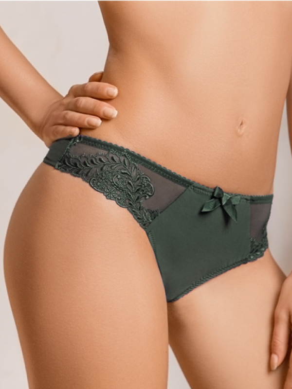 Женские трусы-бразильяна, выполнены из микрофибры с вставками из вышивки, украшены бантиком. Коллекция "Cherry".