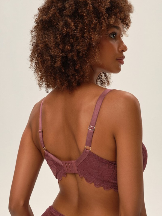 Кружевной бюстгальтер 41743 OATH. Чашка тонкий поролон на кости, на базе Panay. Несъемные регулируемые бретели. Спереди украшен несъемными стрепами. Спинка на подкладе из микросетки.