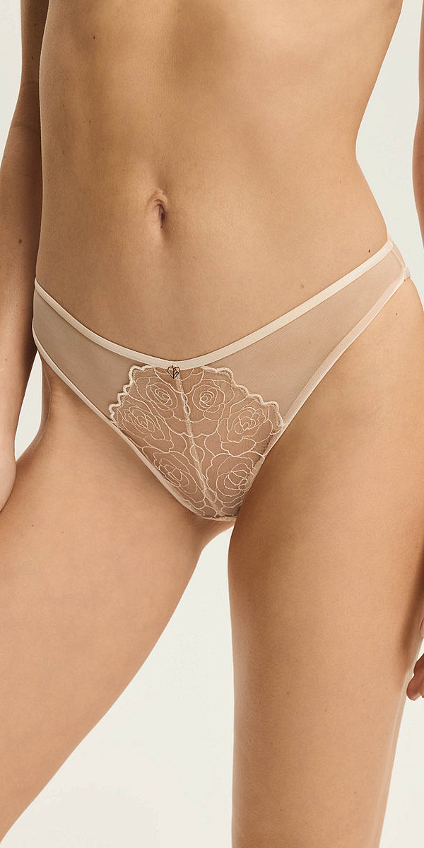 Трусы бразильяно от европейского производителя Esotiq. Выполнены из микросетки с вышивкой. Декор - подвеска.