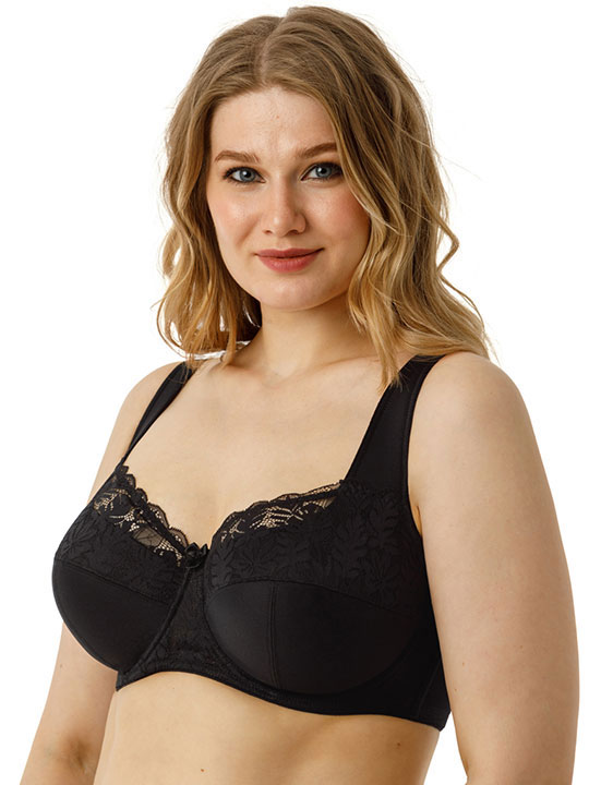 Бюстгальтер на каркасах с мягкой чашкой. Чашки имеют Т-образное членение, что позволяет придать груди правильную округлую форму. Широкий стан с боковыми упругими пластинами плотно облегает тело и обеспечивает стабильную комфортную посадку бюстгальтера на фигуре.