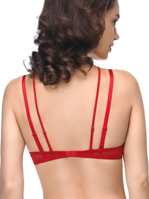 Бюстгальтер пуш-ап среднего размера с гелевой чашкой Matera на косточках. Расположение подушечек в нижней и боковой части приподнимает и сдвигает грудь к центру. Эффект +1 размер. Выполнен из эластичного кружева и сетки. Застежка в один ряд, регулировка на 3 крючка. Регулируемые бретели. Съемный декоративный элемент. Коллекция "Wanda".